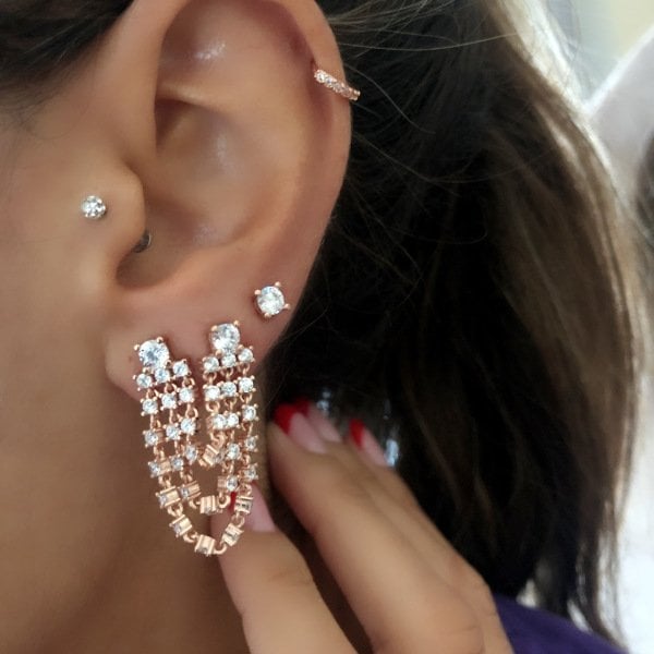 2. görseldeki haliyle gönderilecektir. (zincirli ve tek taş küpe)