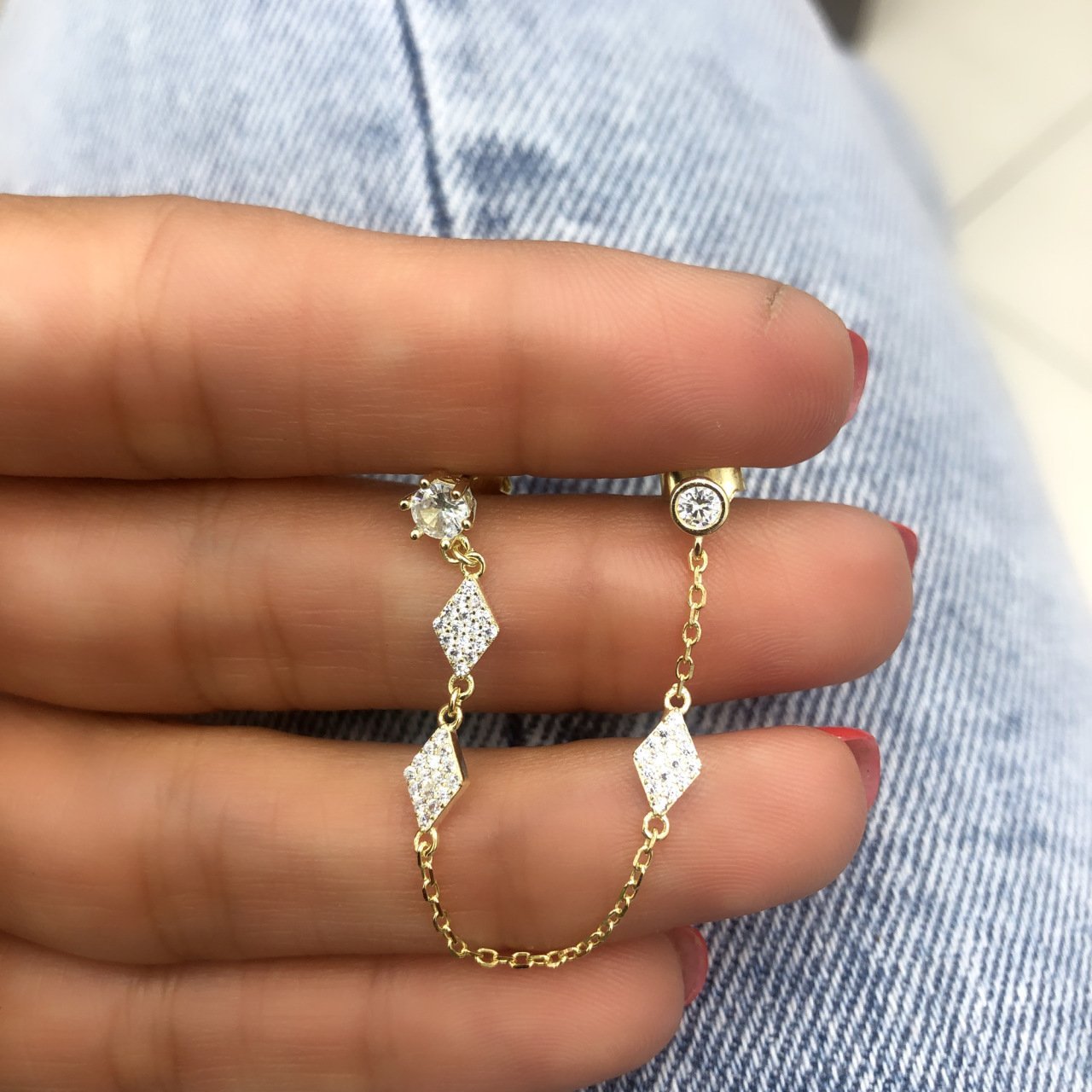Zincirli Dörtgen Küpe (Tek)